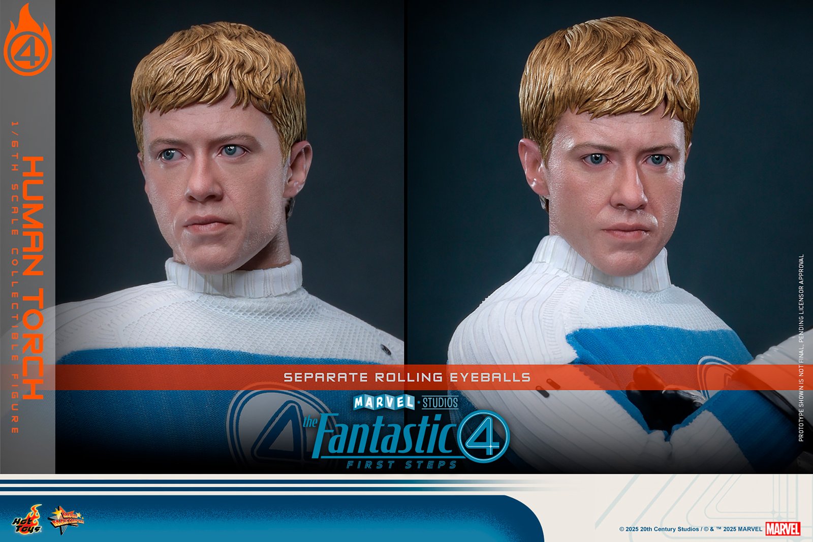 • Esculpido auténtico de Joseph Quinn como Human Torch con ojos móviles