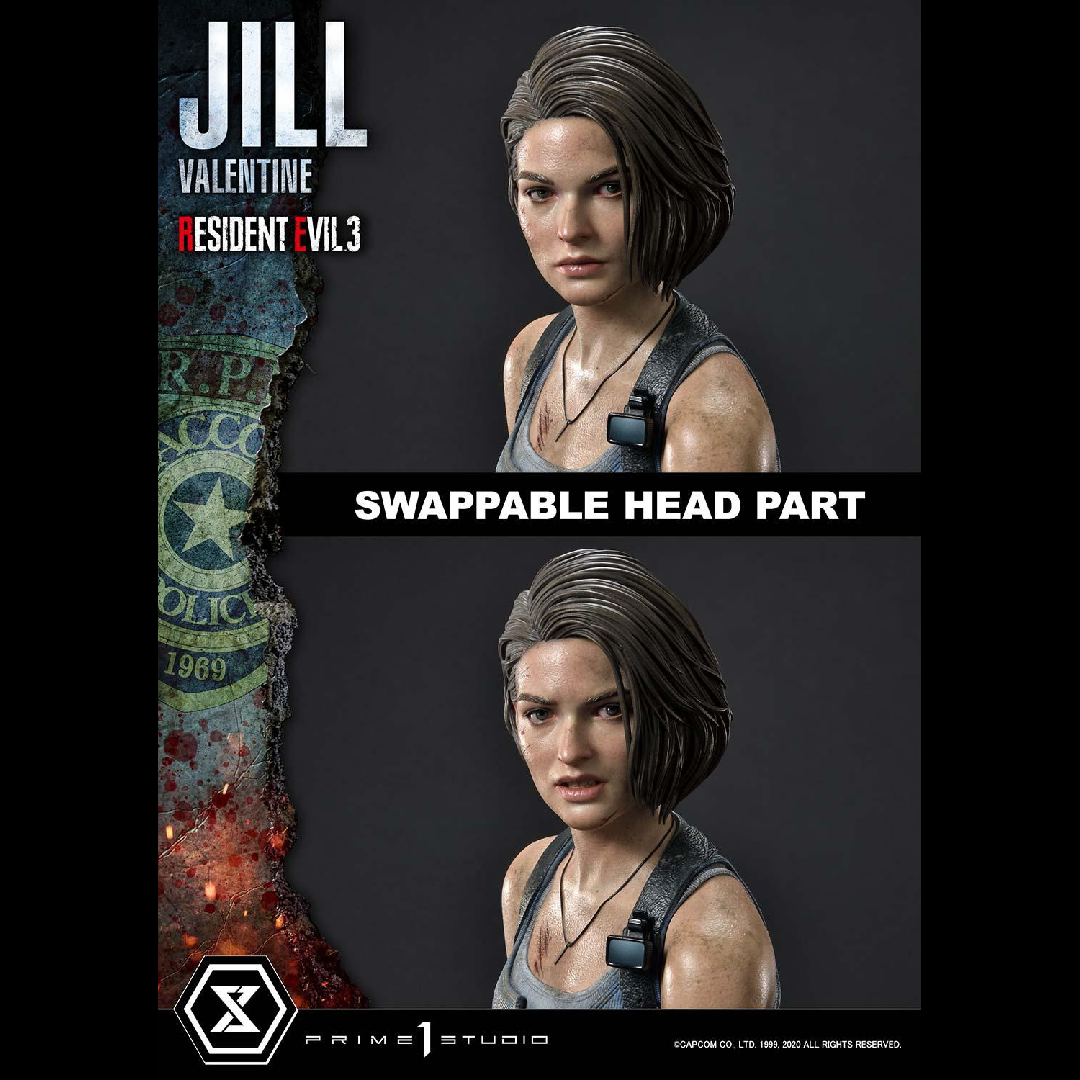 A escala 1/6 y fabricada en resina de alta calidad, esta estatua mide aproximadamente 30 cm de altura. Muestra a Jill en una base urbana colapsada, armada y lista para enfrentar el caos de Raccoon City. Su vestuario detallado (top azul, pantalones de combate, guantes, botas) ha sido recreado con precisión milimétrica.