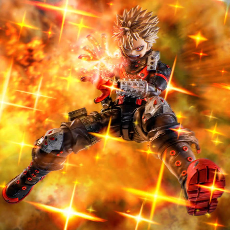 Inspirado en su apariencia en el clímax del anime, Bakugo llega con una escultura precisa, pintura metálica en su traje de héroe y efectos de explosión que permiten recrear sus ataques más icónicos.