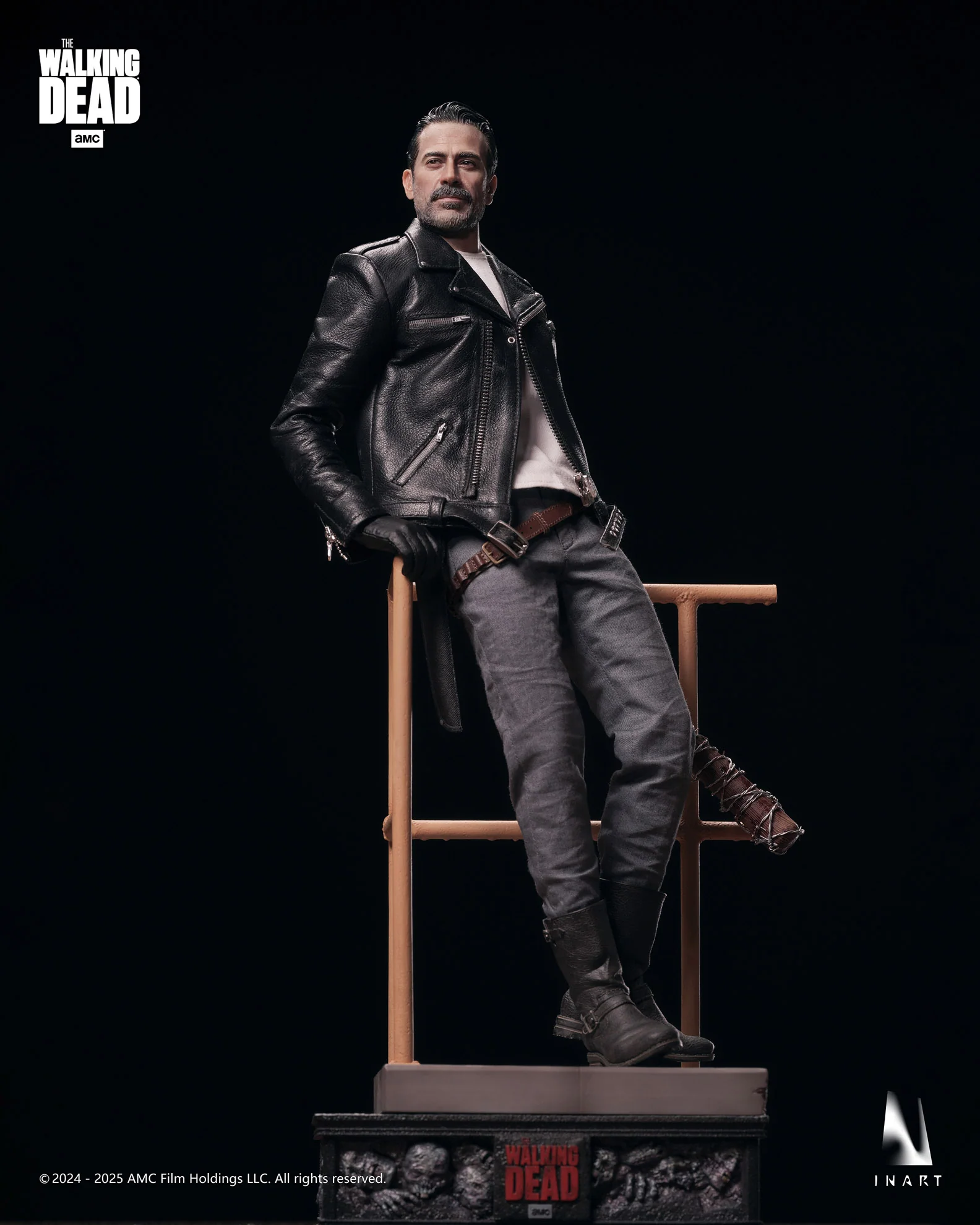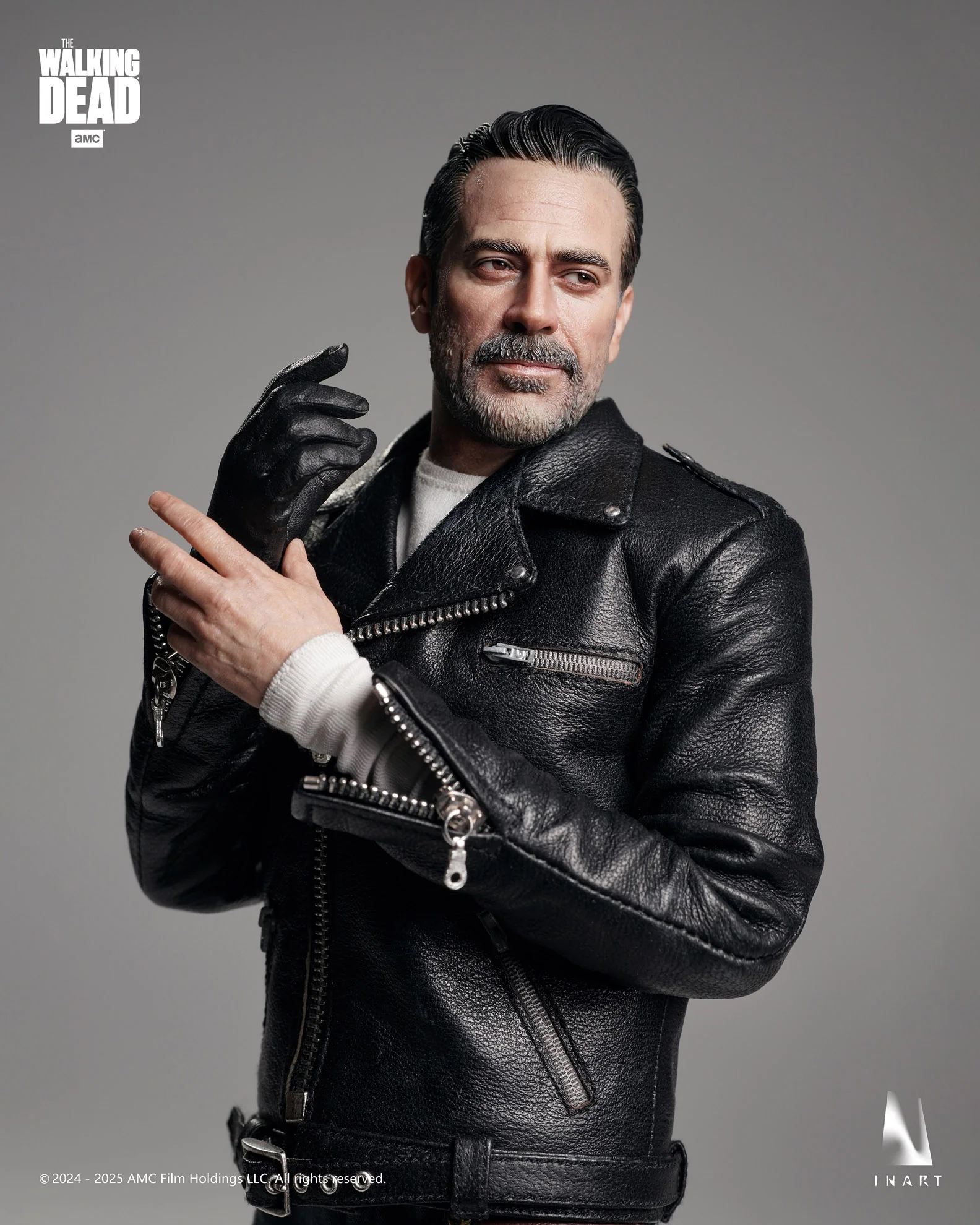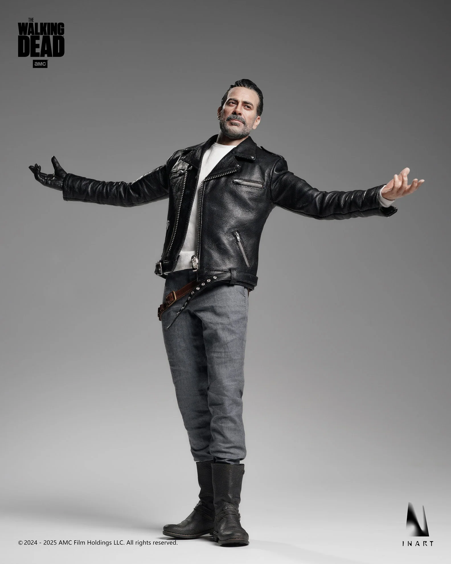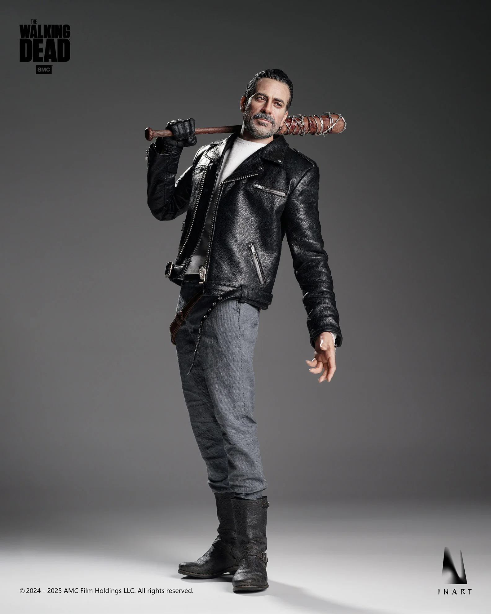 InArt Collectibles presenta a Negan en su versión definitiva a escala 1:6, inspirado en la temporada 8 de The Walking Dead. Con esculpido hiperrealista, ropa de tela real (incluyendo chaqueta de cuero genuino) y su inseparable bate “Lucille”, esta figura captura la presencia imponente y despiadada del villano más carismático de la serie.