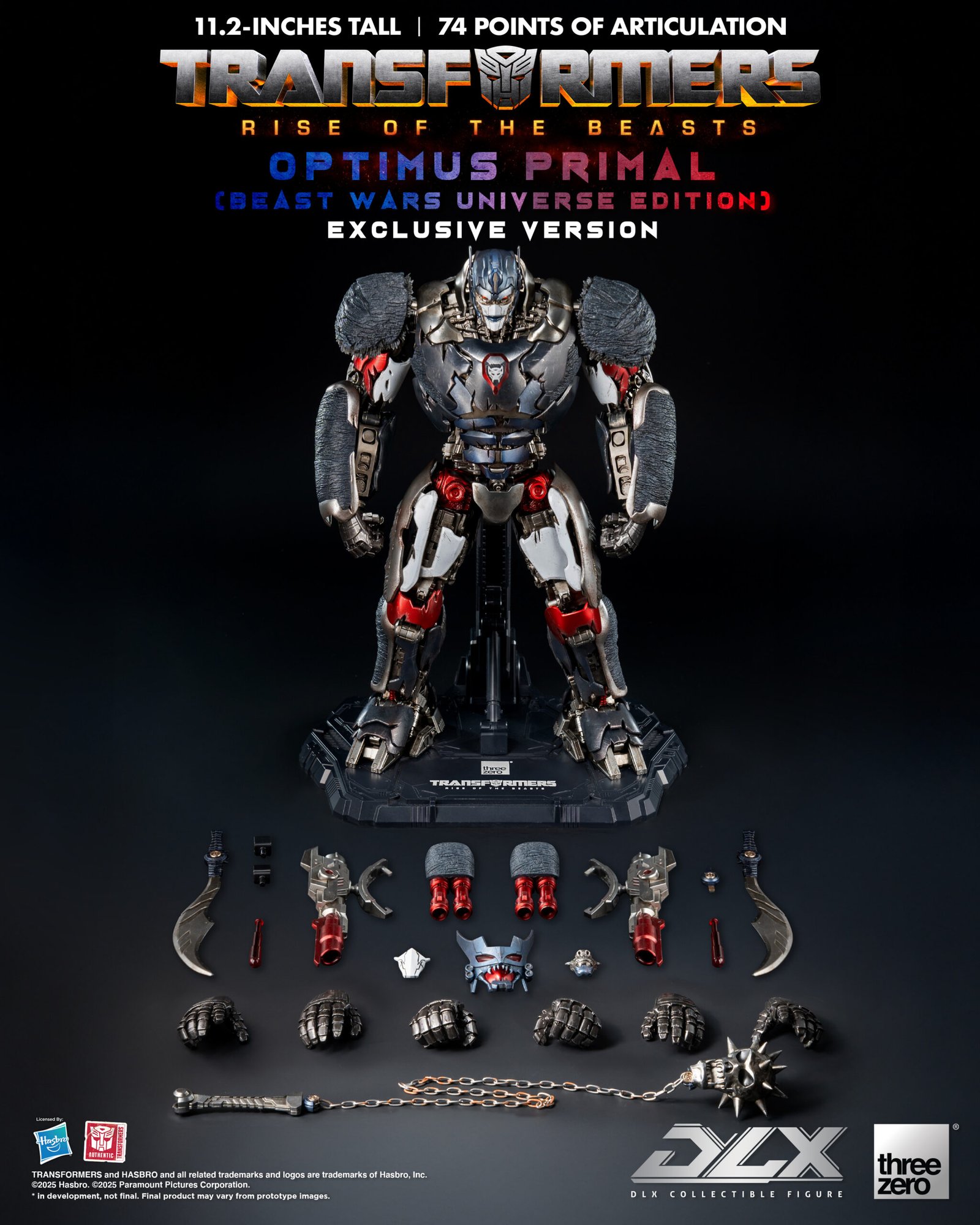 La versión Exclusive Edition incluye accesorios adicionales —el Mutant Mask y el Skull Flail— como homenaje al juguete original de Beast Wars.