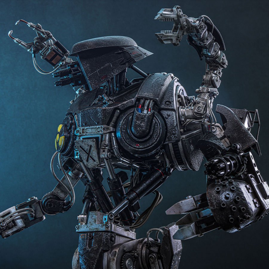Hot Toys presenta a RoboCain, con más de 200 componentes y más de 100 puntos de articulación, una verdadera obra de ingeniería en formato coleccionable. La pintura metalizada gris oscuro con efectos de desgaste aporta realismo cinematográfico.